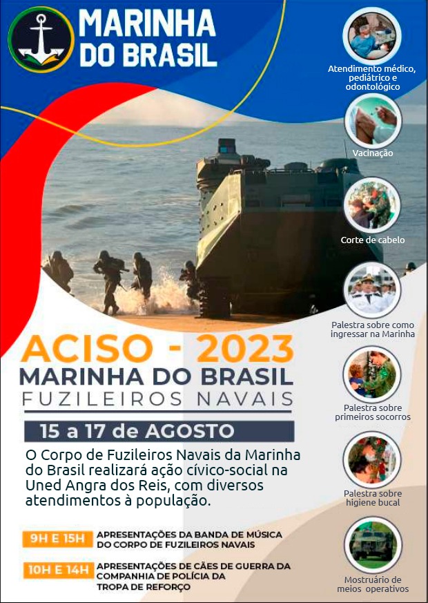 De 15 a 17 de agosto, o Corpo de Fuzileiros Navais da Marinha do Brasil realizará uma ação cívico-social na Uned Angra dos Reis. O evento tem apoio da Direção-Geral e é aberto à comunidade. De acordo com a Capitania dos Portos, o objetivo é promover uma interação benéfica entre a instituição e a população, contribuindo para o desenvolvimento social.
