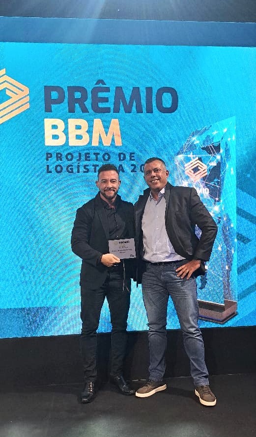 Professor Jonni Guiller Madeira (à esq.) marcou presença na cerimônia que consagrou o Safe Speed System como um dos cinco finalistas do Prêmio BBM Projeto de Logística