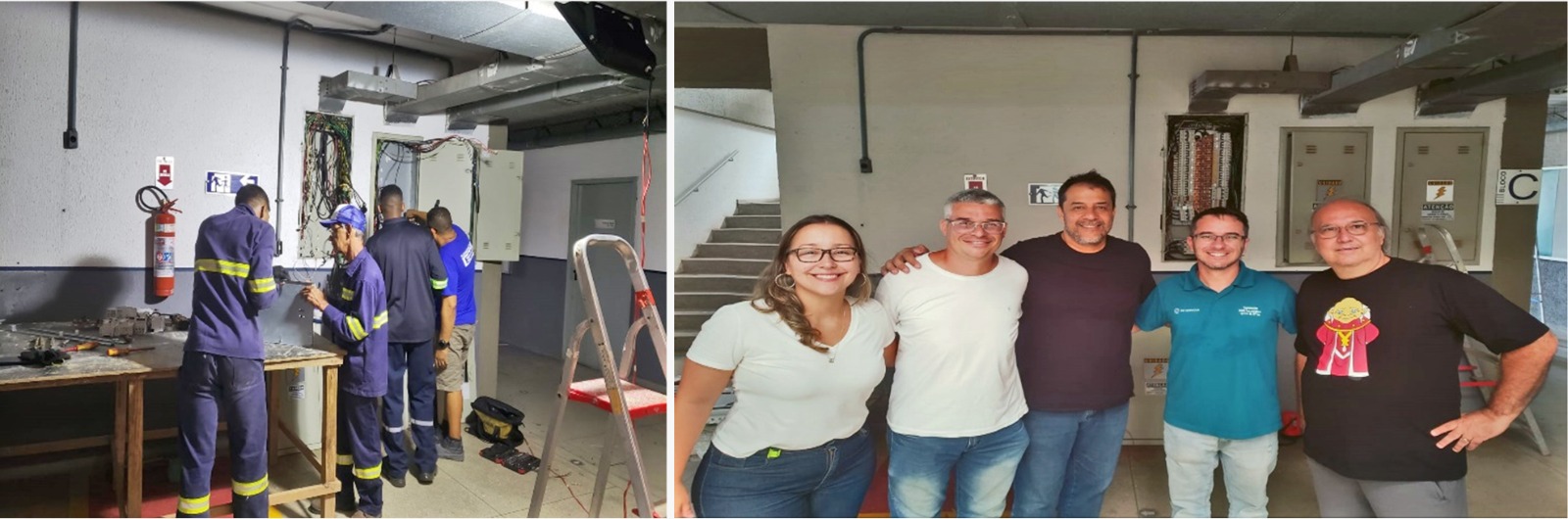 Gestores das duas entidades e equipe terceirizada de manutenção predial acompanharam os serviços de modernização da rede elétrica da Uned Itaguaí