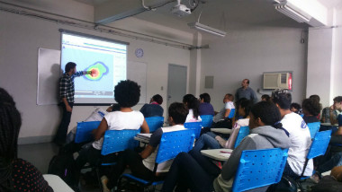 A convite da Coordenação de Meteorologia, o ex-aluno do curso técnico Bruno D’Aiuto da Cunha ministrou palestra para os atuais estudantes, no dia 23 de março. A palestra abordou a Rede Mundial de Detecção de Descargas Atmosféricas, formada por mais de 1.500 sensores instalados em todo o mundo, capazes de observar as descargas entre nuvem (IC: in-cloud) e nuvem-solo (CG: cloud-ground). Cerca de 60 desses sensores estão instalados no Brasil. O palestrante também ensinou os presentes a utilizar o software que recebe os dados de descargas atmosféricas em tempo real. O programa passará a ser utilizado pela coordenação nas aulas do curso e também em pesquisas envolvendo docentes e discentes. Bruno já atuou como técnico em Meteorologia e, atualmente, é meteorologista em uma instituição privada.