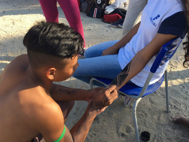 Alunos do curso técnico em Turismo do campus Maracanã aprendem arte e cultura indígena em oficinas ministradas por guaranis mbyá, índios que habitam o território fluminense. Nos dias 10 e 11 de junho, as atividades ocorreram na aldeia de Paraty Mirim, situada na região da Costa Verde. As oficinas integram o projeto Arte e Cultura Indígena, coordenado pela professora Nancy Rabelo, com o apoio da Coordenação de Artes. Além das visitas às aldeias, o projeto conta com aulas semanais, não só sobre cultura indígena e suas influências na sociedade brasileira, mas também sobre questões políticas, como as demarcações de terras.