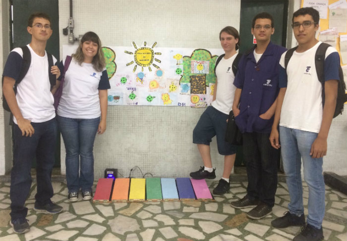 Motivados pelo desejo de incentivar atividades lúdicas no ensino infantil, um grupo de alunos do curso técnico em Eletrônica do campus Maracanã criou o “Piano Interativo”. O dispositivo, desenvolvido com materiais reciclados e uma interface microcontrolada de baixo custo, simula a frequência de notas musicais a partir de uma aplicação que converte em sons o movimento de teclas no formato de pedais.
