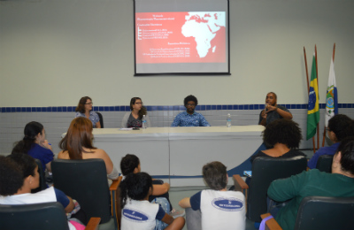 A mesa foi composta pelo professor de História e mestre em Relações Étnico-raciais Elbert de Oliveira Agostinho, pela professora de Artes Visuais e mestranda do PPRER Fernanda Pereira da Silva e pelo premiado cineasta do coletivo Siyanda Hugo Lima. A professora Talita Oliveira mediou o debate.