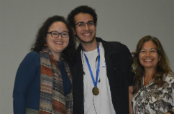 Da esquerda para a direita: os alunos Gustavo Monção (1° lugar), Victoria Freitas (2° lugar) e Matheus Mota (3° lugar)