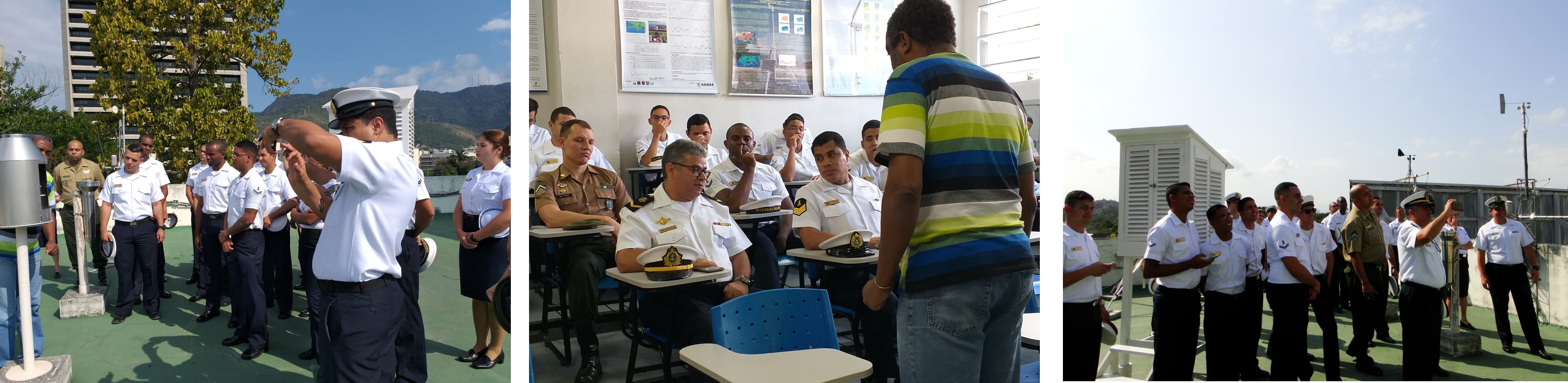 Professores e alunos-estagiários do Curso Técnico Integrado de Meteorologia realizaram atividades práticas na Estação Meteorológica Urbana Especial do Cefet/RJ para militares da Marinha. As atividades, que ocorreram no dia 13 de setembro, foram para vinte militares que estão realizando o Curso de Observador Meteorológico na Unidade da Diretoria de Hidrografia e Navegação, pertencente à Marinha do Brasil.