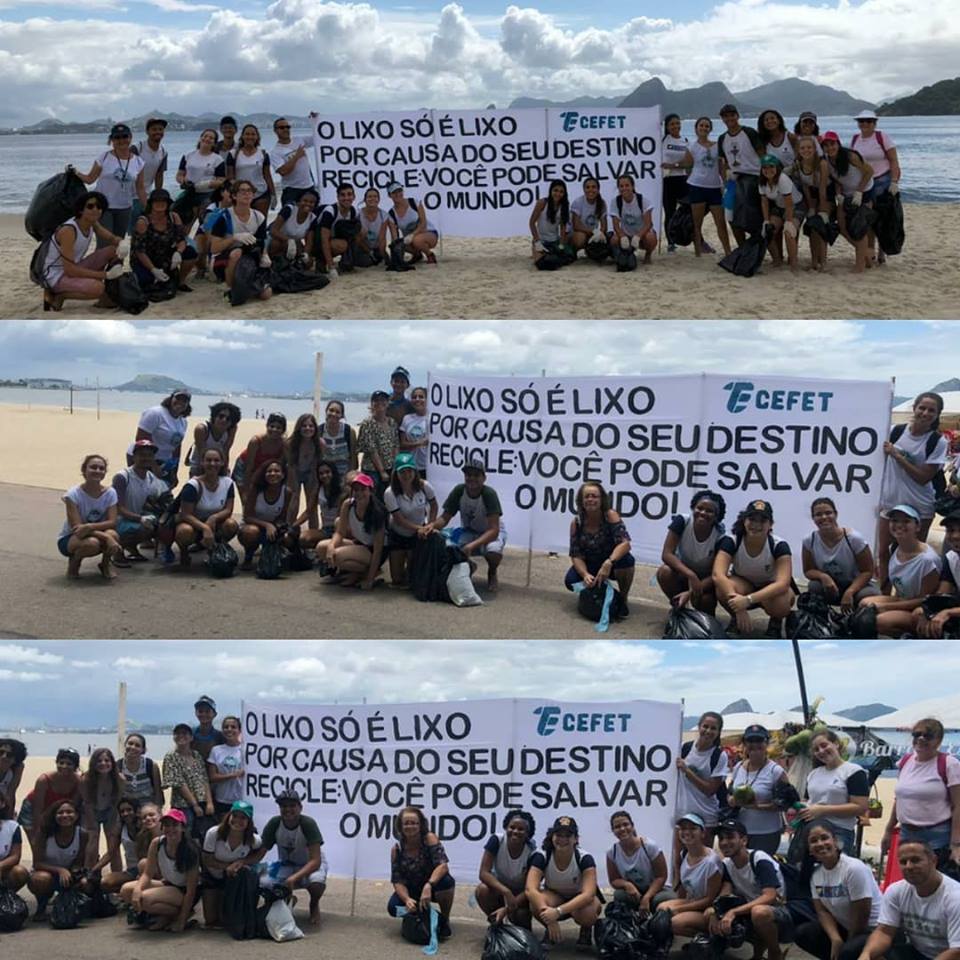 As professoras Valéria Pereira e Giselle Corrêa, lotadas na Coordenação de Química do campus Maracanã, estão coordenando um projeto conscientização ambiental que reúne alunos da turma 3BED do ensino médio/técnico. O projeto se chama “Menos plástico é mais” e visa conscientizar as pessoas a reutilizar, reciclar e a adquirir postura ecologicamente sustentável frente ao descarte desse material. Para essa atividade, as professoras realizaram a ida a três praias da cidade junto com os alunos: Ipanema, São Conrado e Flamengo. “Estamos tentando dar mais visibilidade ao projeto, com o objetivo de possibilitar que mais pessoas estejam engajadas em ações futuras”, informa a professora Valéria.