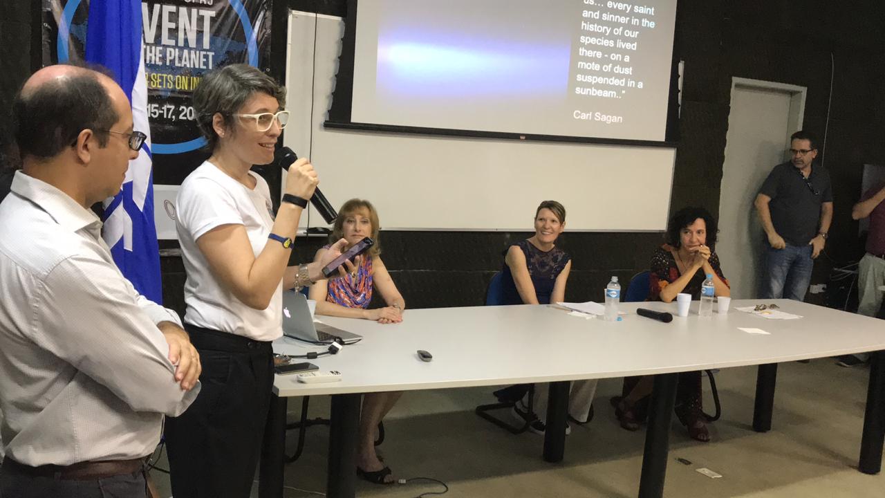 O evento também contou com o relato da professora Andreia Guerra de Moraes, que desenvolve pesquisa sobre História da Ciência e Educação Científica e que, recentemente, foi eleita presidente do International History, Philosophy, and Science Teaching Group (IHPST). “Esse movimento das mulheres ganhando espaço na ciência é muito importante para sair da invisibilidade e também é fundamental para nossas alunas”, enfatizou Andreia. A professora Ana Lucia Ferreira de Barros, que desenvolve pesquisas sobre Física Atômica e Nuclear com ênfase em Astrofísica e Astroquímica no meio interestelar, também contou como foi a construção da sua carreira acadêmica. “Nós, mulheres, temos que acreditar em nossa força e realizar nossos sonhos”, contou Ana, que também contou que sonhava em ser astronauta e hoje realiza pesquisas em nível de pós-doutorado na NASA.
