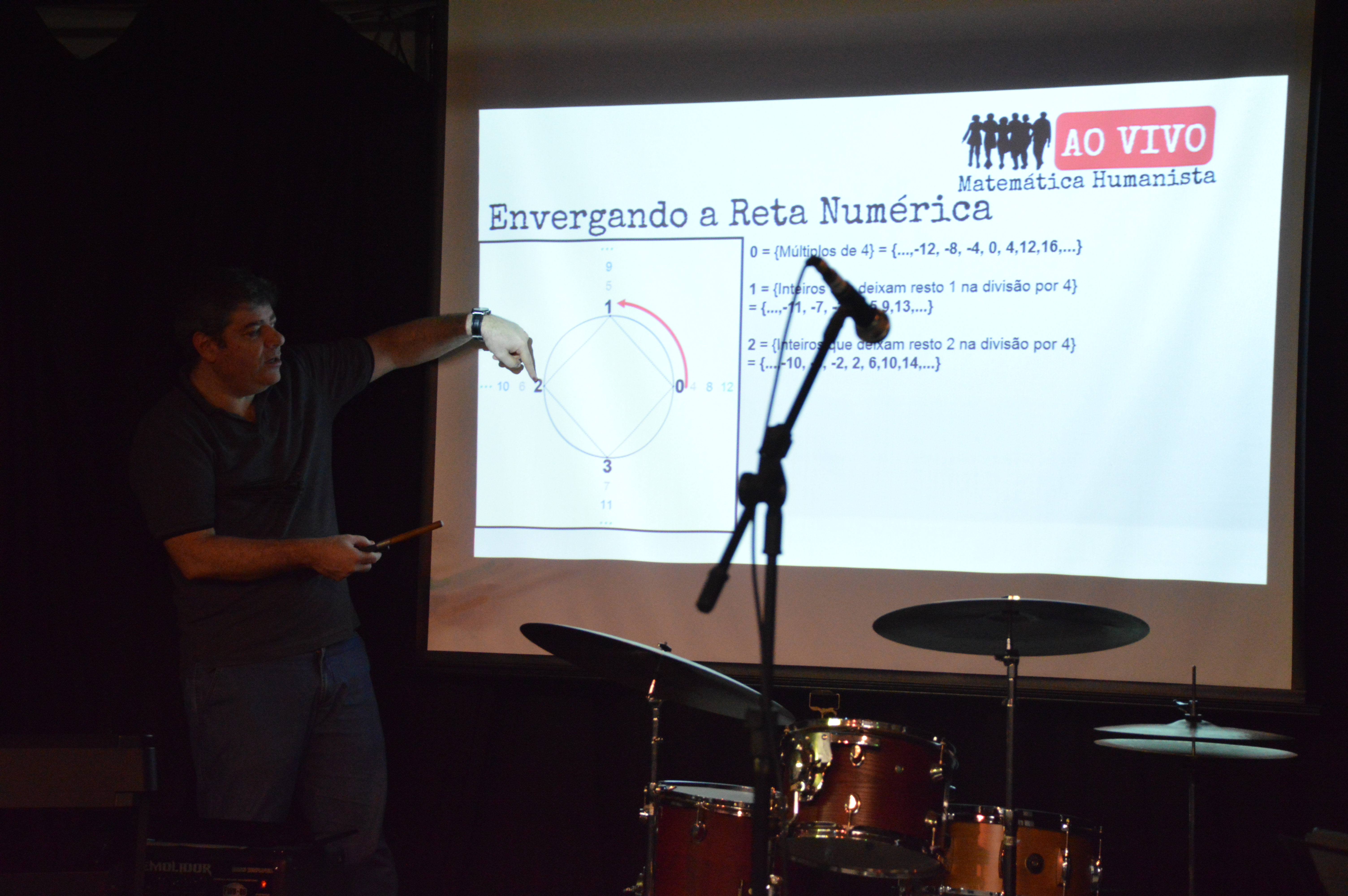 Com as baquetas nas mãos e o auditório lotado, o professor e baterista profissional articulou os diferentes ritmos musicais com assuntos do currículo do ensino médio, como progressões numéricas, trigonometria, funções algébricas e geometria. “Depois de trabalhar muito tempo usando a matemática para descrever ritmos musicais, eu resolvi ir no caminho contrário e comecei a utilizar os ritmos para construir ideias matemáticas”, conta o professor.