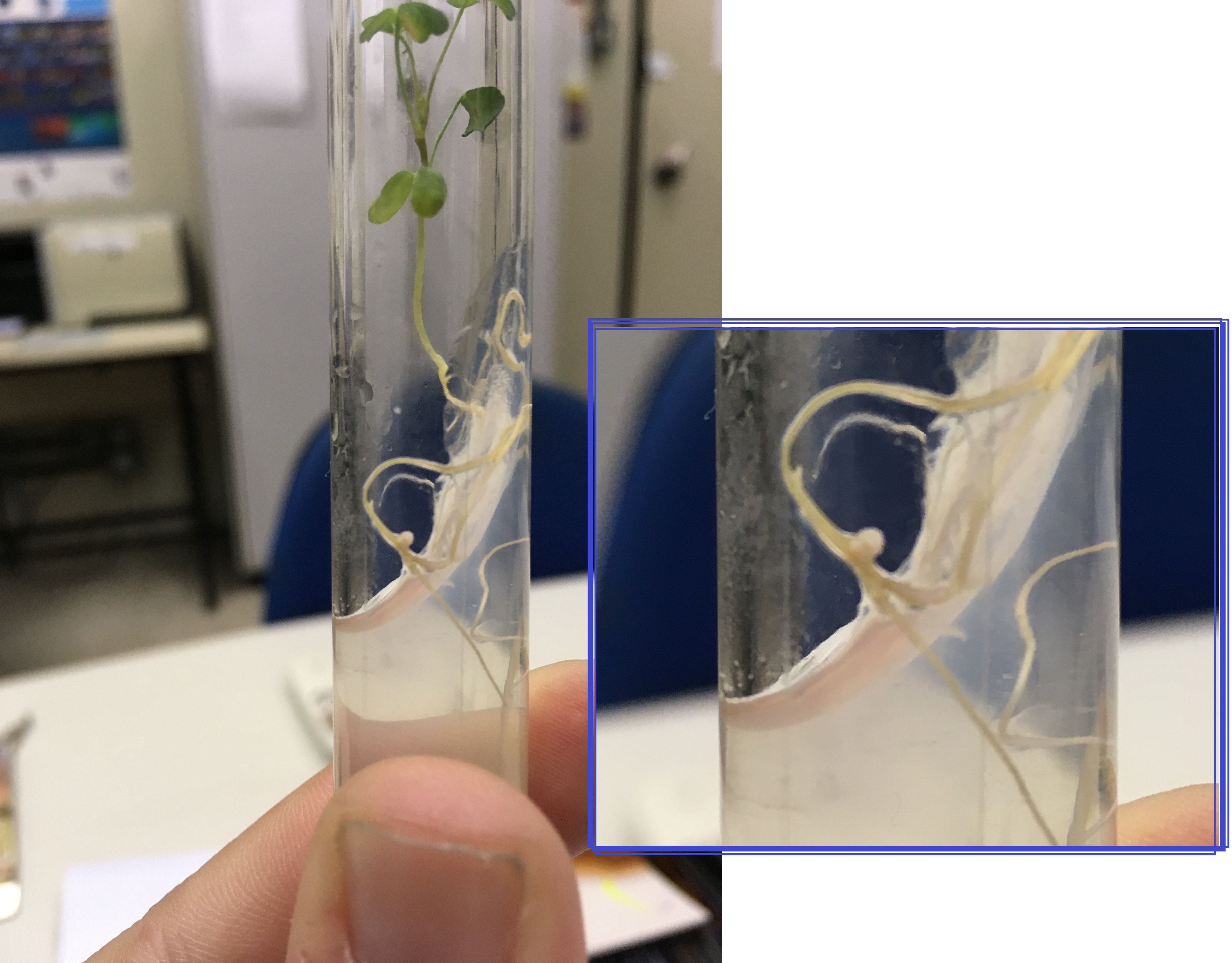 Após o voo estratosférico, recebemos o experimento via Sedex. Essa etapa foi muito importante, pois foi o momento de saber se as bactérias sobreviveram ou não às condições da estratosfera. As pérolas de cerâmica impregnadas com a bactéria Ensifer meliloti foram imersas em meio de cultura para bactérias e pudemos compará-las a uma amostra de controle, que não foi submetida à estratosfera. Em laboratório, as bactérias foram inoculadas em raízes de alfafa (Medicago sativa L.) cultivadas em tubos de ensaio, utilizando um sistema de iluminação LED construído pelos alunos.