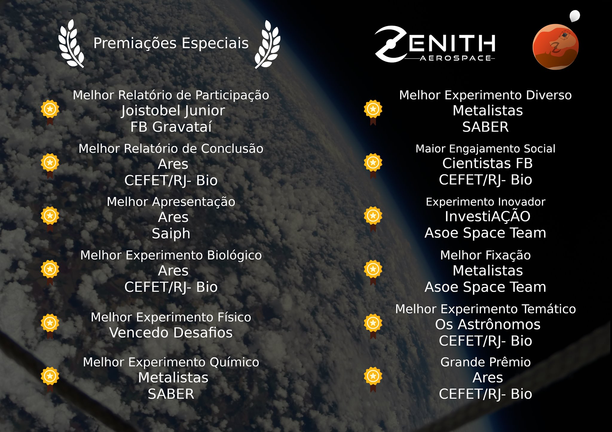 Ao final da competição, a equipe Cefet/RJ-Bio recebeu o prêmio de “Classe Estratosfera” – dada às equipes que cumprem todos os requisitos relativos à estruturação das equipes, metodologia, engajamento social do projeto, entre outros –, e os prêmios de Melhor Relatório de Conclusão, Melhor Experimento Biológico, Maior Engajamento Social e Melhor Projeto Temático. Além disso, eles receberam também o Grande Prêmio, a conquista mais nobre das Olimpíadas Garatéa-E, dado ao projeto que se destaca perante todos os outros.