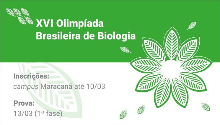 Estudantes dos cursos de nível médio/técnico do campus Maracanã já podem se inscrever para a XVI Olimpíada Brasileira de Biologia (OBB). As inscrições devem ser realizadas até o dia 10 de março na Coordenação de Biologia, localizada no Bloco A. A prova será aplicada no dia 13 de março, das 8h às 12h, na própria instituição. O local de prova será definido após avaliação da quantidade de inscritos. Os candidatos que tiverem dúvidas sobre a competição ou sobre as inscrições podem procurar o professor Jorge Lemos na Coordenação de Biologia.