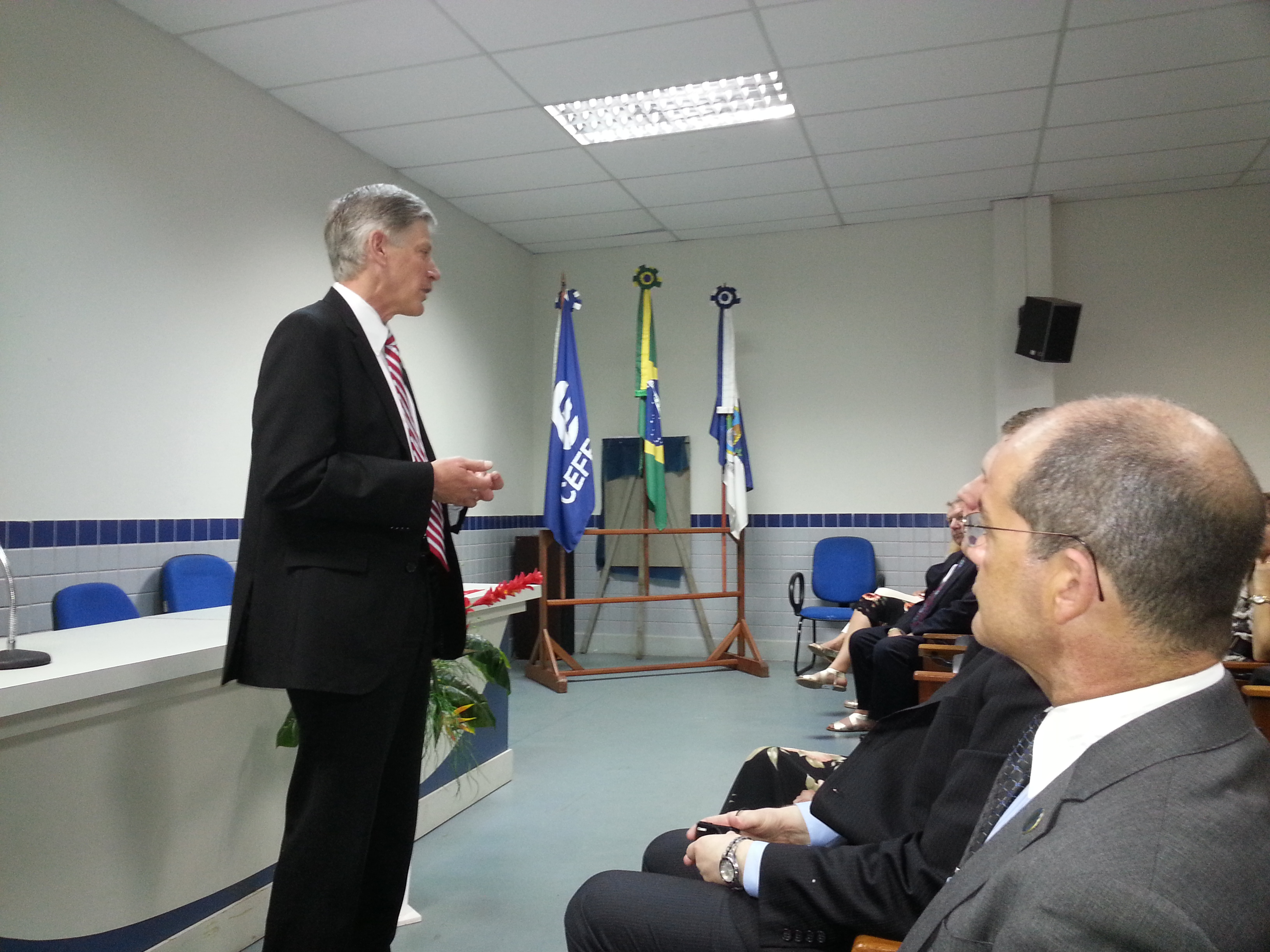Palestra do presidente da Saint Martin’s, no Cefet/RJ, em maio de 2014.