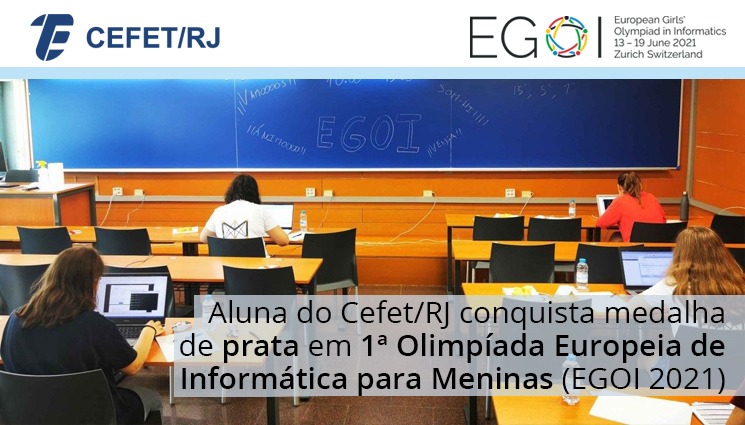 Luana Amorim Lima, estudante do curso técnico em Informática do Cefet/RJ campus Maracanã, garantiu uma medalha de prata na 1ª Olimpíada Europeia de Informática para Meninas (EGOI 2021). Na disputa, a jovem conquistou o 36º lugar entre 156 participantes de várias partes do mundo e foi a segunda brasileira com melhor desempenho na competição. Em virtude das medidas de combate ao coronavírus, a EGOI 2021 foi disputada on-line entre os dias 13 e 19 de junho.