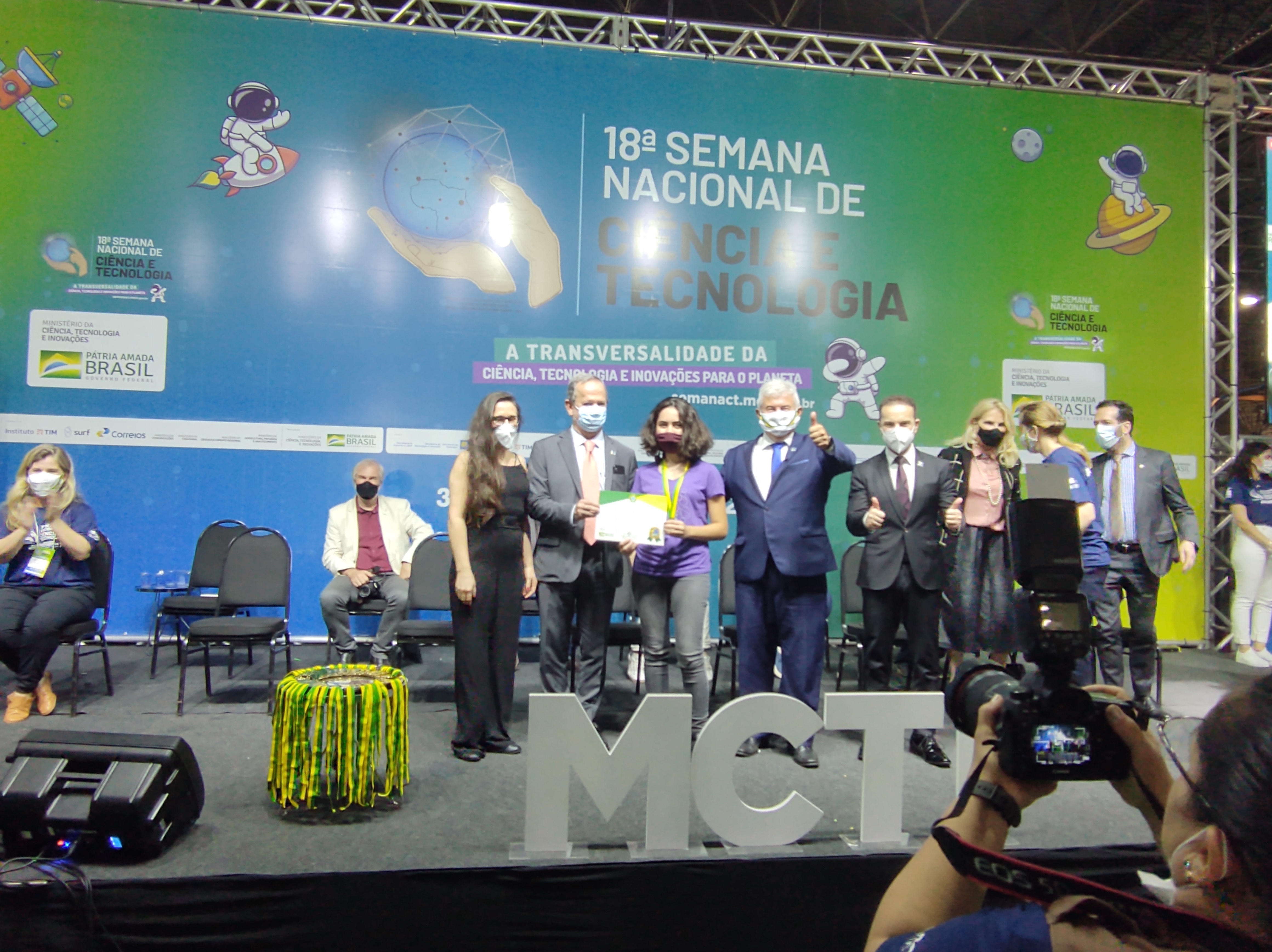 Na última segunda-feira (06/12), o Ministério da Ciência, Tecnologia e Inovações (MCTI) homenageou com a medalha de Honra ao Mérito MCTI as medalhistas da Olimpíada Europeia de Informática para Meninas (EGOI 2021). A cerimônia fez parte da 18ª Semana Nacional de Ciência e Tecnologia e contou com a presença do ministro Marcos Pontes e da líder da equipe brasileira da EGOI 2021, professora Nara Bigolin.