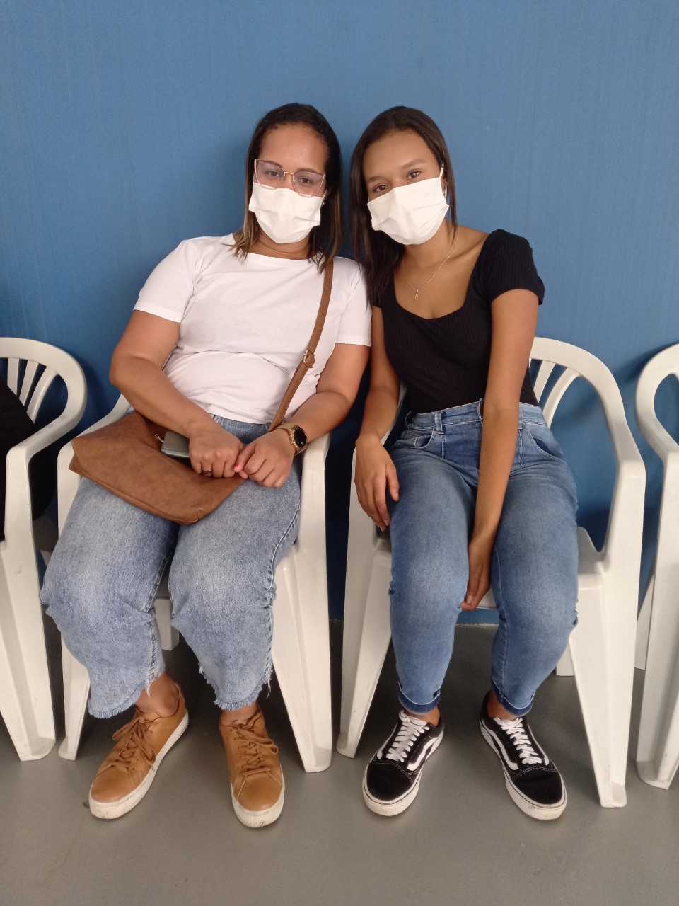 Natália e Larissa Alves (mãe e filha) na recepção aos alunos do Cefet/RJ