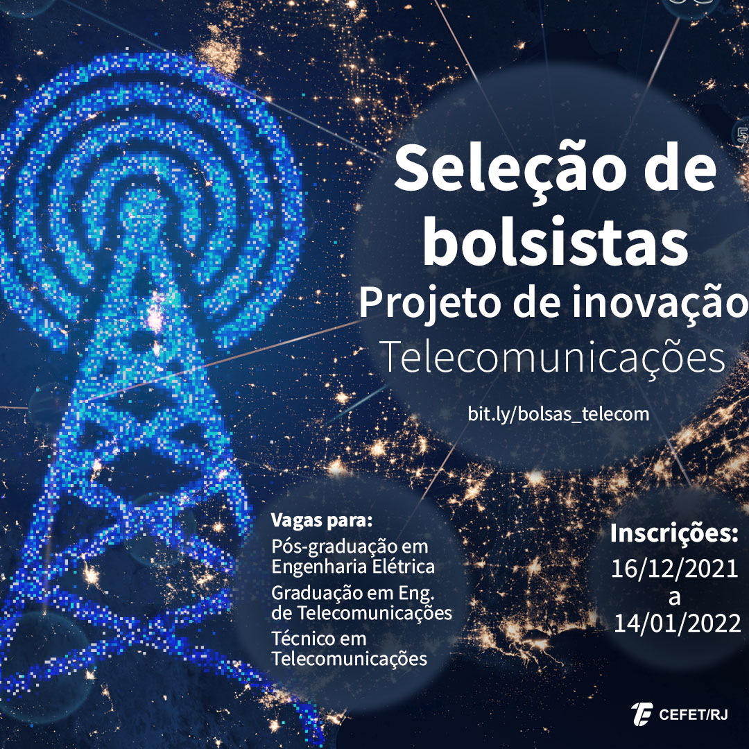 O processo de seleção disponibiliza vagas para alunos da pós-graduação em Engenharia Elétrica, da graduação em Engenharia de Telecomunicações e do técnico em Telecomunicações do Cefet/RJ. Os interessados devem se inscrever no período de 16/12/2021 a 14/01/2022.