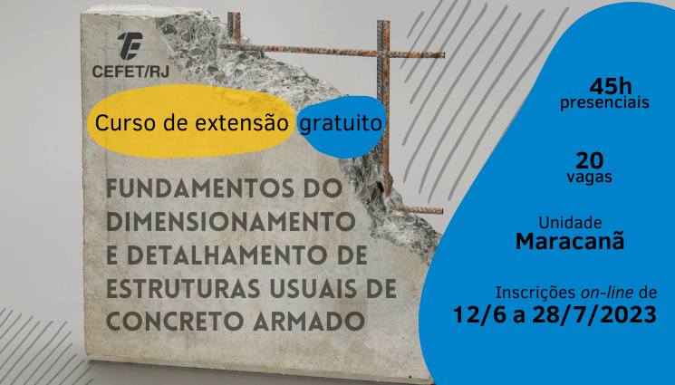 O Departamento de Extensão e Assuntos Comunitários (DEAC) divulga o curso gratuito “Fundamentos do dimensionamento e detalhamento de estruturas usuais de concreto armado”. O conteúdo do curso abrangerá os principais conceitos e práticas sobre o concreto armado, com base na nova norma brasileira, NBR 6118:2023, na NBR 6120:2019 e na NBR 6122:2022, com a utilização de planilhas e programas de cálculo de fácil aplicação, e será ministrado pelo professor do Cefet/RJ, Claudio Wilson Nóbrega.
