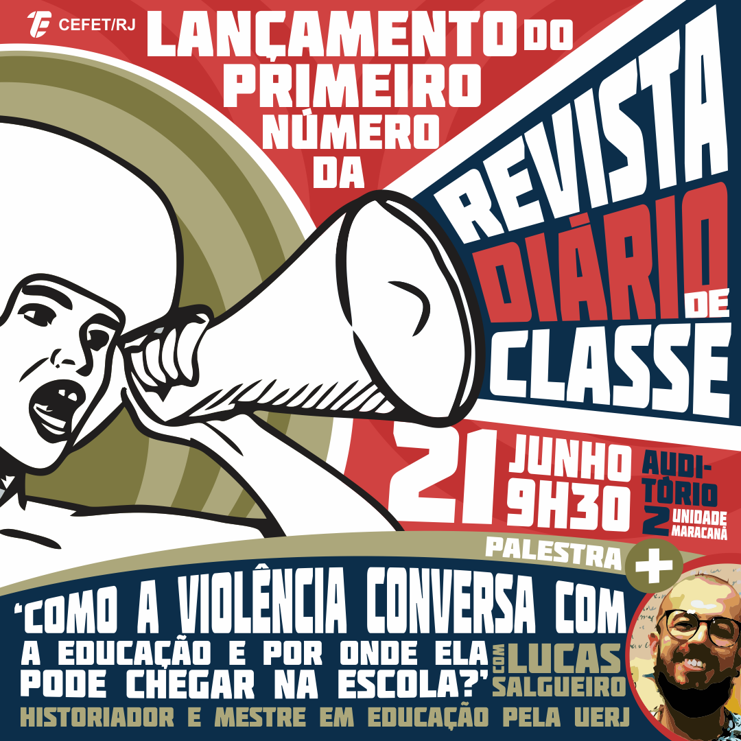 No dia 21 de junho, às 9h30, a Coordenação de Sociologia realizará dois eventos no Auditório 2 da Unidade Maracanã. Inicialmente, será lançado o primeiro número da revista Diário de Classe, projeto de extensão premiado em feiras como Febrace, FECTI e EXPOTEC, e que visa estimular a produção científica e artística na educação básica, bem como a sua divulgação. Em seguida, o historiador e professor da UFRJ Lucas Salgueiro Lopes apresentará uma palestra, que terá como debatedora a professora Jucilene Nogueira, do Cefet/RJ. Com o tema “Como a violência conversa com a educação e por onde ela pode chegar na escola?”, a atividade abordará as diferentes expressões da violência no contexto escolar, buscando contribuir para a reflexão coletiva pela comunidade escolar sobre uma questão urgente e que atinge não apenas estudantes e educadores, mas também preocupa toda a sociedade.