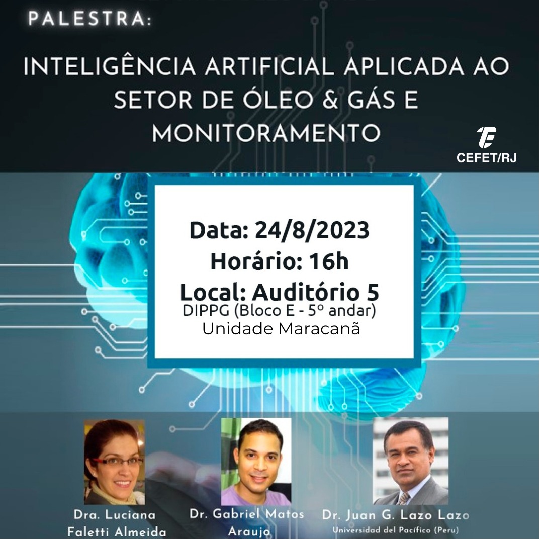 No dia 24 de agosto, o Cefet/RJ irá promover a palestra “Inteligência artificial aplicada ao setor de óleo & gás e monitoramento”. O evento é aberto a todos os alunos e docentes da instituição e não é necessário se inscrever. Os participantes terão direito a certificado. O encontro acontecerá no Auditório 5 da Unidade Maracanã, a partir das 16h. A organização é do Programa de Pós-Graduação em Engenharia Elétrica (PPEEL) e da Coordenação do Curso de Engenharia Eletrônica (CCGELT).