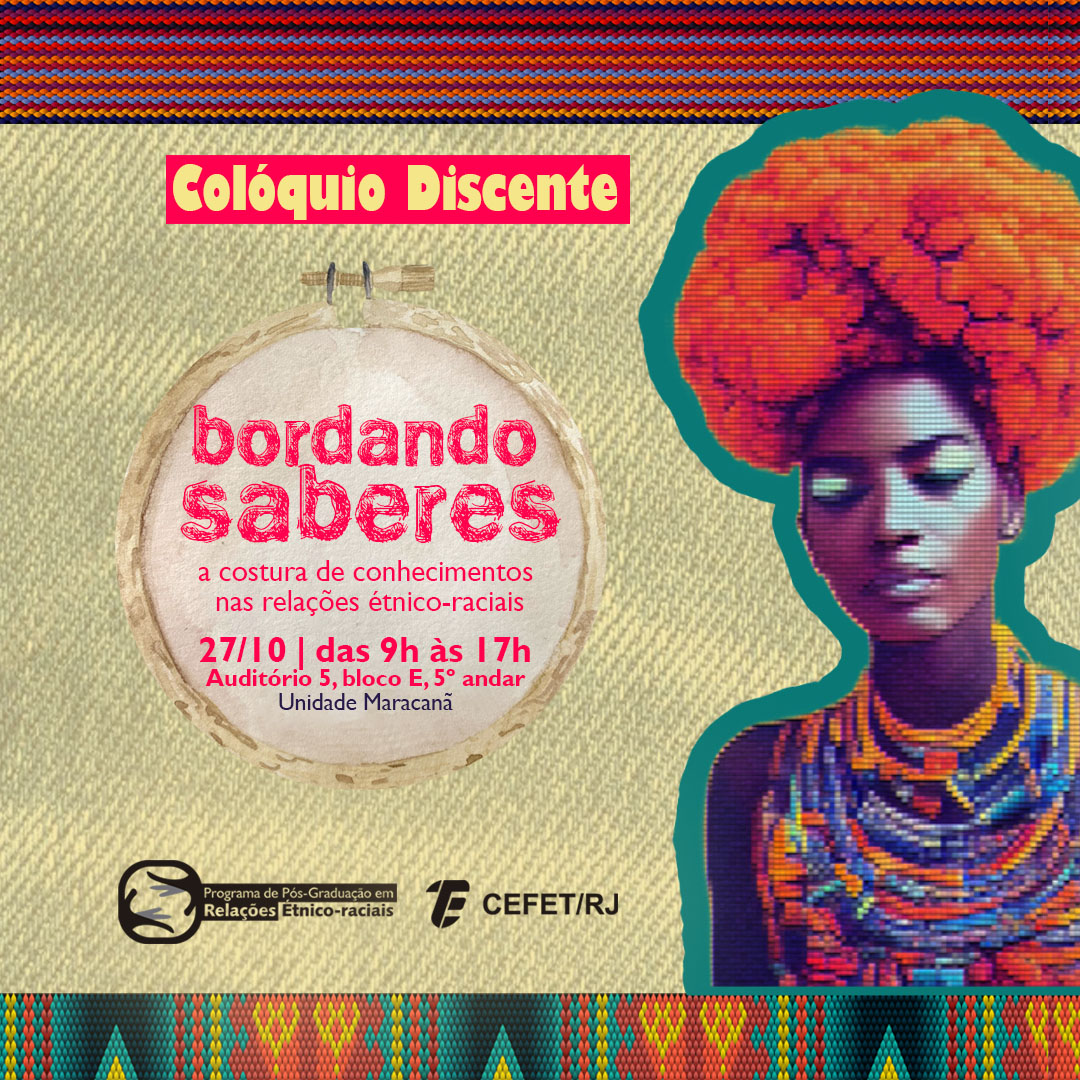 Na próxima sexta-feira (27), os alunos de mestrado do Programa de Pós-Graduação em Relações Étnico-Raciais (PPRER) irão realizar o colóquio “Bordando saberes: a costura de conhecimentos nas relações étnico-raciais”. As atividades acontecerão no Auditório 5 da Unidade Maracanã, das 9h às 17h. O colóquio é aberto ao público e os participantes terão direito a certificado. Esta será a quinta edição do evento acadêmico e científico do PPRER, organizado pelos estudantes. Clique aqui para se inscrever.