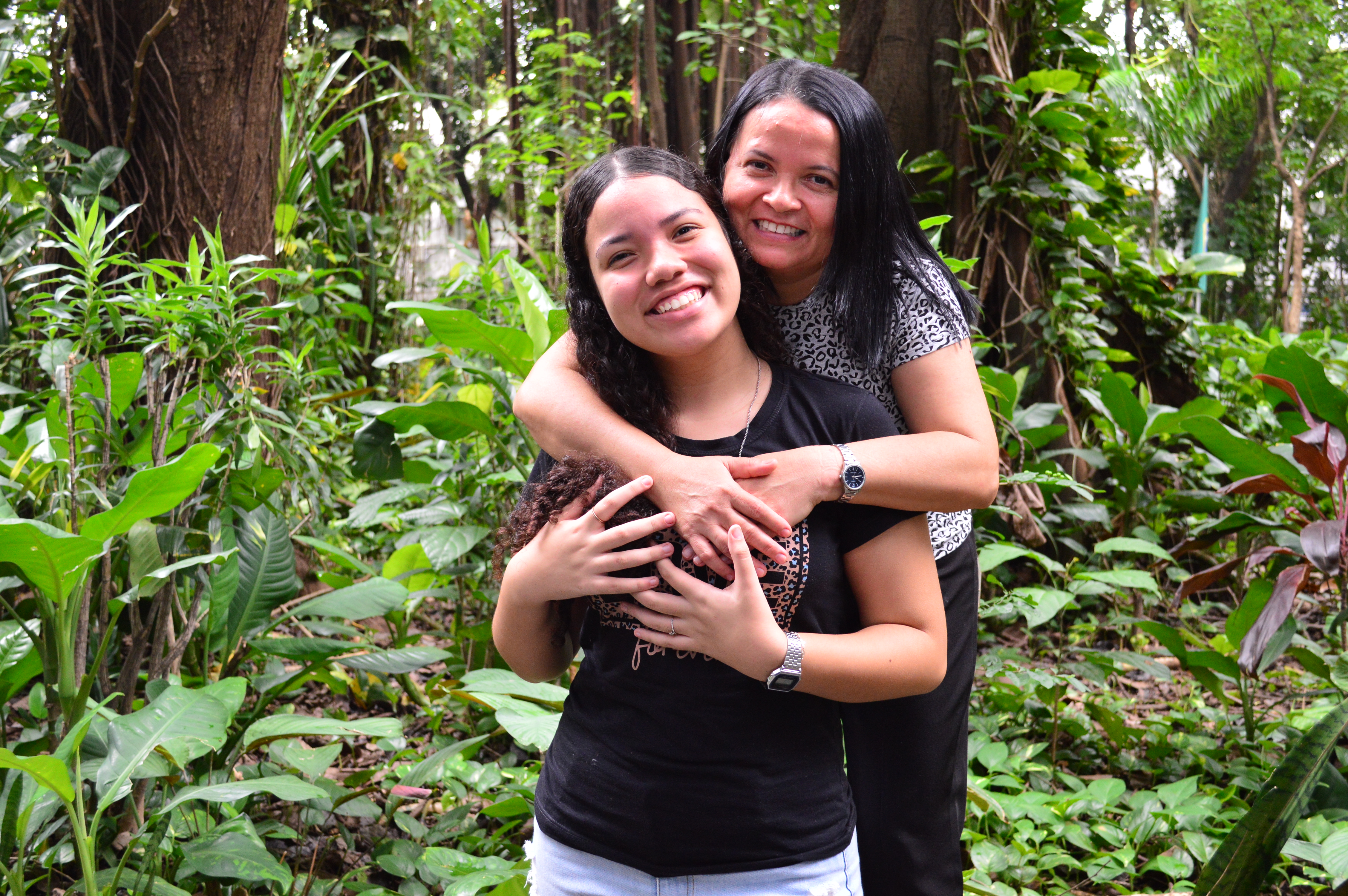 Abraçada pela mãe, Alice Leôncio celebra a aprovação no curso técnico em Mecânica