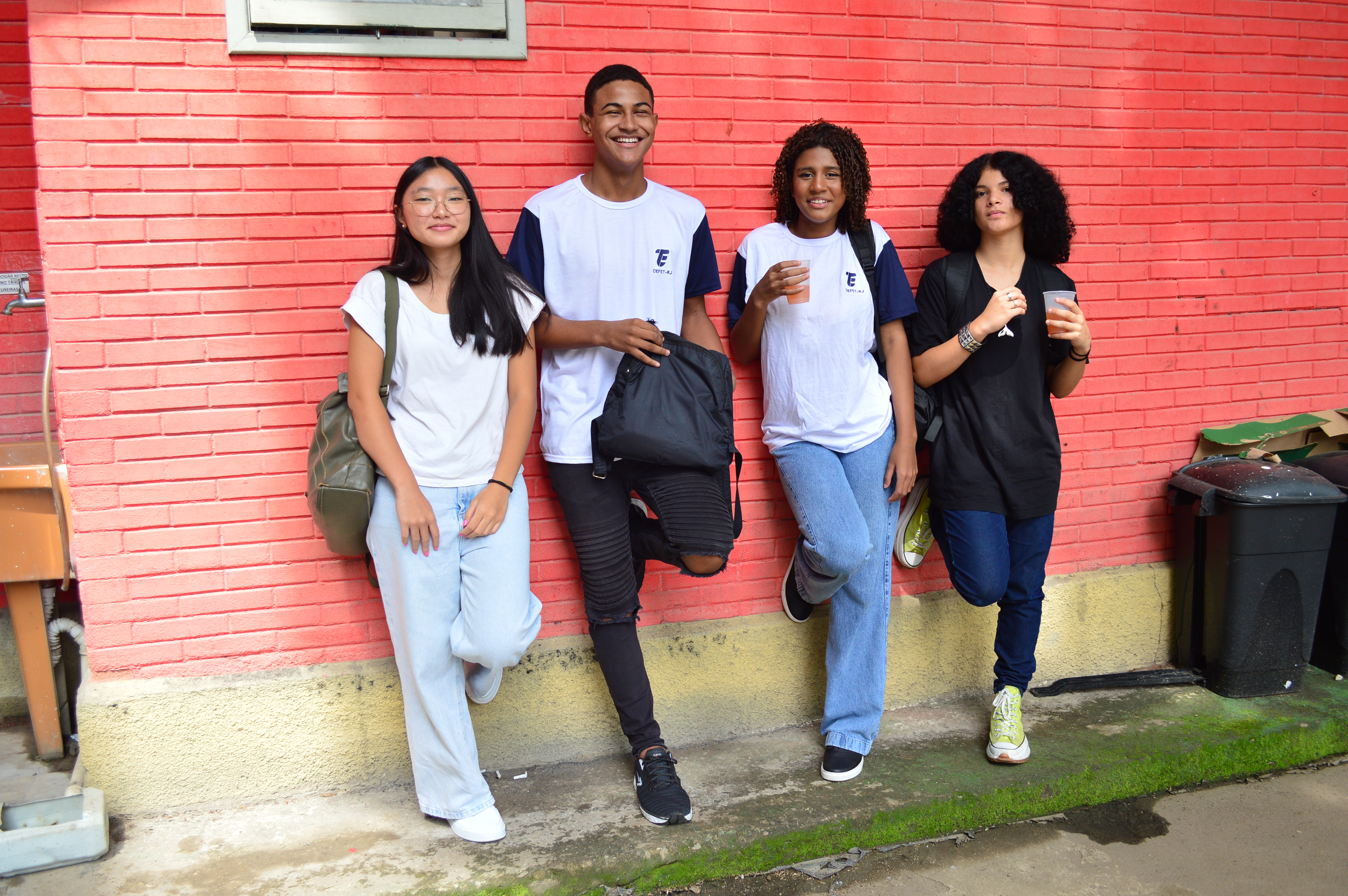 Da esq. para dir. os calouros Ana Emi Kina, Kaio Gabriel Moraes, Emanuelle Gonzales e Luy Valentino compartilham a experiência de participar do evento de recepção do Cefet/RJ Unidade Maracanã.