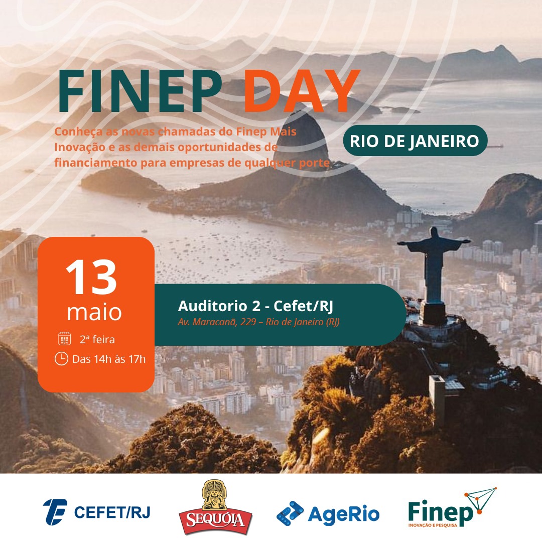 No dia 13 de maio, o Cefet/RJ e a Financiadora de Estudos e Projetos (Finep) irão promover o Finep Day, evento que apresentará oportunidades de investimento em projetos de inovação. O encontro acontecerá no Auditório 2 da Unidade Maracanã, das 14h às 17h, e é direcionado a servidores de todas as unidades do Cefet/RJ, alunos de incubadoras, além de representantes de empresas e de instituições externas. As vagas são limitadas. Para quem não puder acompanhar presencialmente, haverá transmissão on-line pelo canal do Cefet/RJ no YouTube. Clique para acessar o link de inscrição.