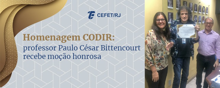 Na terceira sessão ordinária de 2024, realizada na última sexta-feira (24), o Conselho Diretor (CODIR) prestou uma homenagem ao conselheiro e professor Paulo César Bittencourt. Na ocasião, foi entregue uma moção honrosa, em reconhecimento à sua trajetória docente no Cefet/RJ e relevante contribuição à gestão da instituição, conduzida de forma ética.