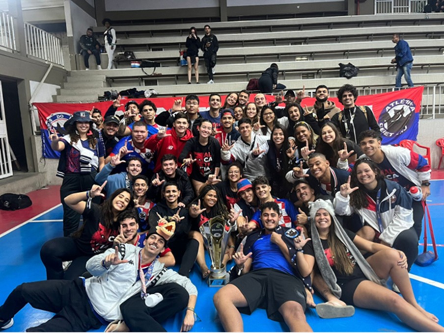 Delegação da Associação Atlética Acadêmica (A.A.A.) do Cefet/RJ e Torcida Organizada Independente (TOI) Lobos do Bosque, após a premiação