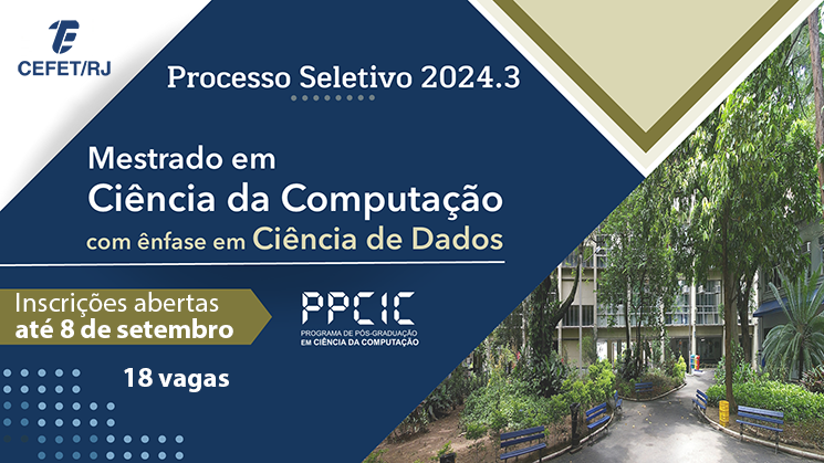 Estão abertas até 8 de setembro de 2024 as inscrições do processo seletivo do curso de Mestrado em Ciência da Computação do Cefet/RJ. O edital oferece 18 vagas, para ingresso no terceiro trimestre de 2024, na Unidade Maracanã. Clique para conferir o edital.