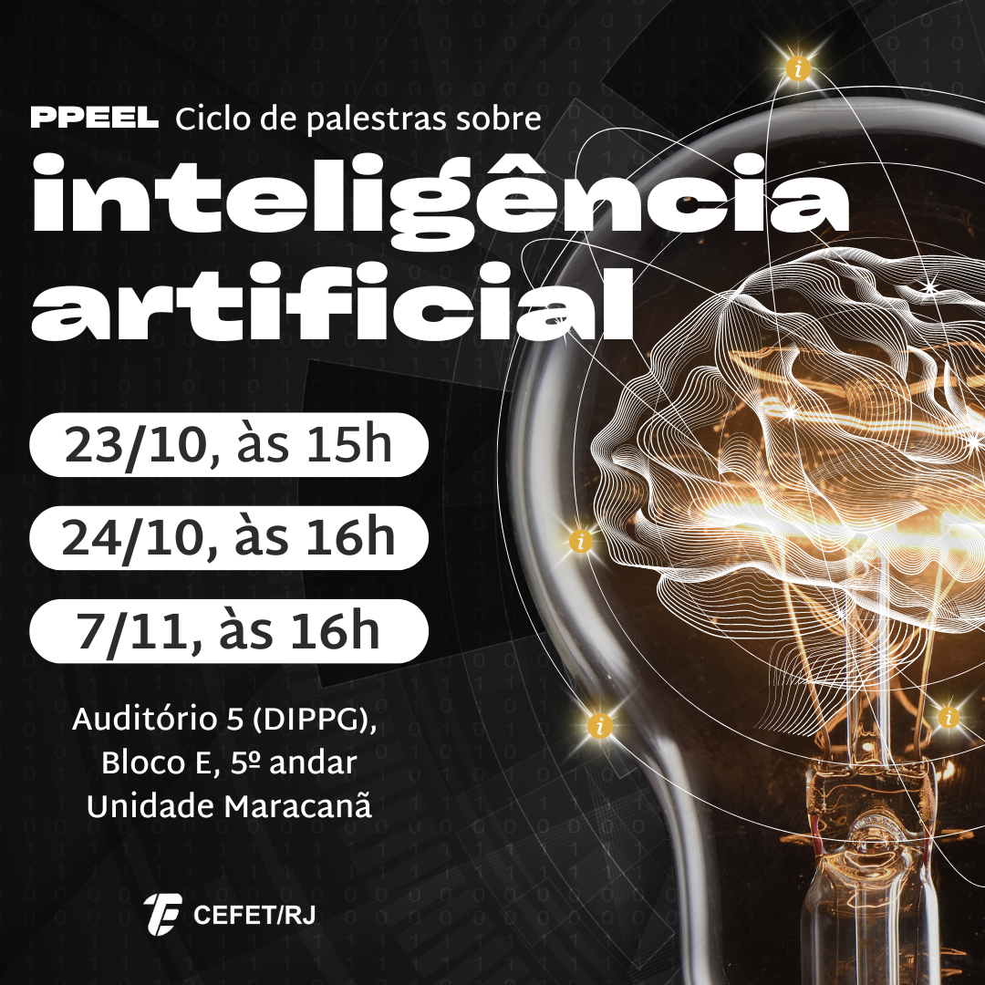 O Programa de Pós-Graduação em Engenharia Elétrica (PPEEL) do Cefet/RJ realizará, nos dias 23 e 24 de outubro e 7 de novembro de 2024, um ciclo de palestras sobre inteligência artificial (IA). As palestras acontecerão no Auditório 5 (DIPPG), Bloco E, 5º andar, na Unidade Maracanã.