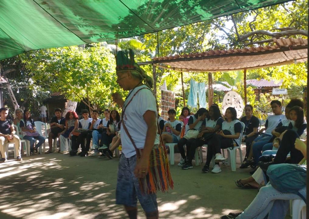 A programação incluiu uma atividade cultural com cânticos e danças tradicionais. Os estudantes também percorreram diferentes espaços da Aldeia, como a área de lazer das crianças, o antigo prédio do Museu do Índio, a cozinha e a feira de artesanato.