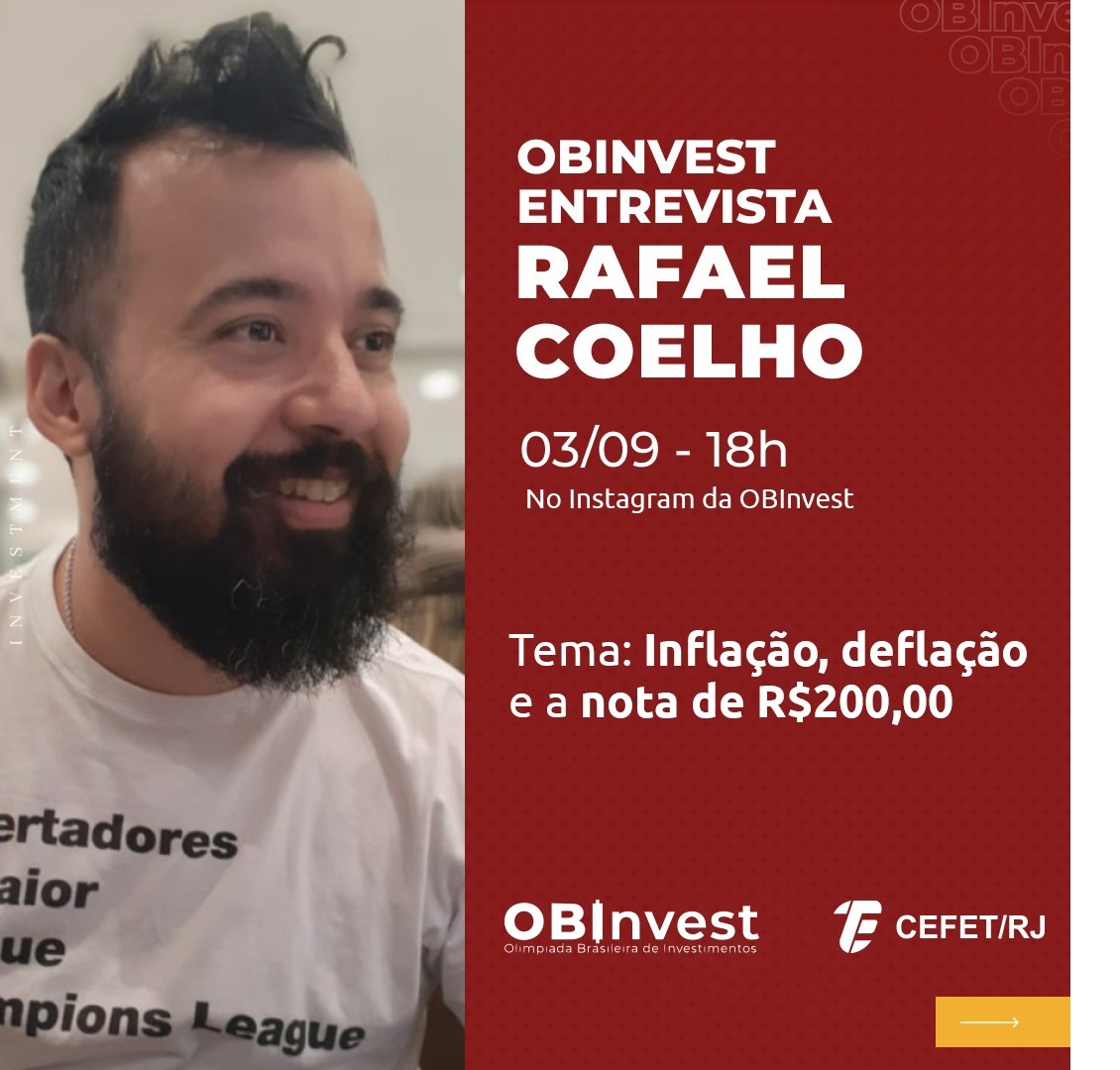 O projeto teve início em outubro de 2019 e, desde julho, a equipe começou a divulgar conteúdos sobre educação financeira e investimentos na página @obinvestbrasil no Instagram. Nesta quarta (03), às 18h, a OBInvest irá promover uma live com o professor de geografia Rafael Coelho abordando o tema “Inflação, deflação e a nota de R$ 200”. Rafael é formado em Geografia pela Universidade Estadual do Rio de Janeiro (UERJ) e possui MBA em Gestão Comercial pela Fundação Getúlio Vargas (FGV-RJ).