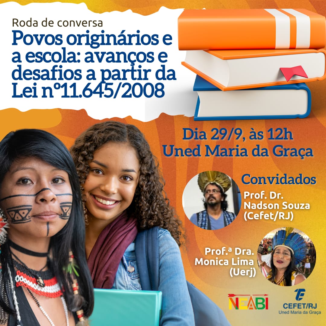 Na próxima sexta-feira (29/9), o Núcleo de Estudos Afro-Brasileiros e Indígenas (NEABI) da Uned Maria da Graça promoverá a roda de conversa intitulada "Povos originários e a escola: avanços e desafios a partir da Lei nº 11.645/2008". O encontro acontecerá das 12h às 13h, na área de convivência da unidade, e é aberto a toda a comunidade escolar.