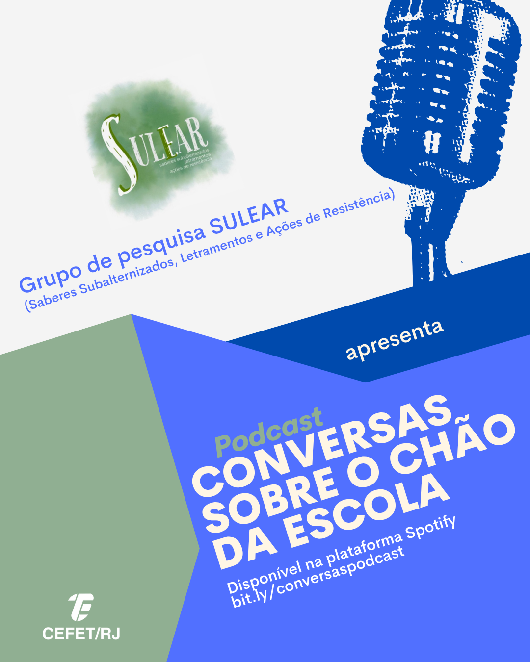 O grupo de pesquisa SULEAR (Saberes Subalternizados, Letramentos e Ações de Resistência), do Cefet/RJ Uned Maria da Graça, lança o programa “Conversas sobre o Chão da Escola”. Trata-se de uma série de podcasts em que educadores do Cefet/RJ são entrevistados para contar sobre suas práticas e visões pedagógicas alinhadas com os direitos humanos e a decolonialidade. Os encontros trazem não somente a dimensão profissional dos entrevistados, mas também a sua dimensão humana.