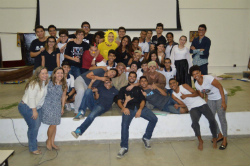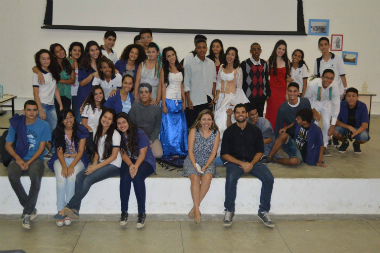 | Alunos do curso técnico em Telecomunicações que encenaram A Farsa de Inês Pereira |