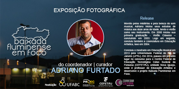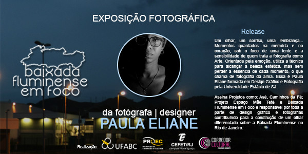 A mostra fotográfica “Baixada Fluminense em Foco” está exposta até o dia 18 de abril na Universidade Federal do ABC (UFABC), em São Bernardo do Campo (SP). O trabalho é de autoria de dois representantes do Núcleo de Arte e Cultura (NAC) do campus Nova Iguaçu, Adriano Furtado e Paula Eliane, e tem o objetivo de valorizar e dimensionar a região da Baixada Fluminense, provocando a visão e o pensamento crítico do apreciador e conscientizando-o sobre as diversas formas de leitura das fotografias.