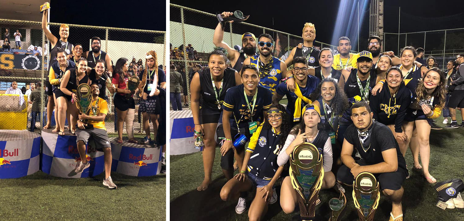 Os atletas do Cefet/RJ campus Nova Iguaçu que participaram dos Jogos Integrados de Engenharia – o INTERENG 2019 – conquistaram dois troféus: o de melhor equipe da competição e o de melhor torcida. Com essas premiações, a Atlética do campus Nova Iguaçu subiu para a série A. A partir do próximo ano, a agremiação estudantil passa a disputar com equipes de universidades como a UFRJ e a UFF, além de também competir com os atletas do Cefet/RJ campus Maracanã. As informações são da professora Luane Fragoso, diretora do campus Nova Iguaçu.