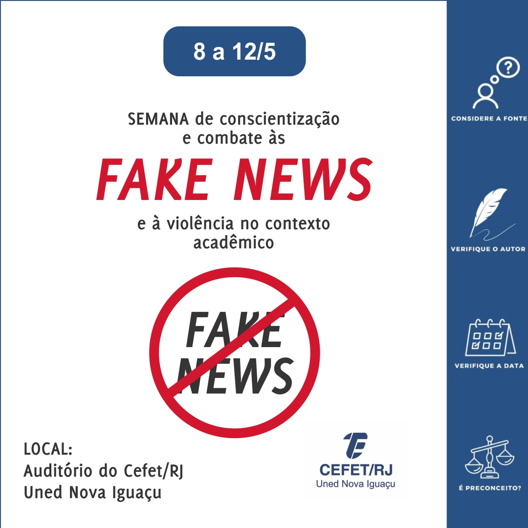 De 8 a 12 de maio, a Direção do Cefet/RJ Uned Nova Iguaçu e a Seção de Articulação Pedagógica (SAPED-NI) promovem a “Semana de conscientização e combate às fake news e à...