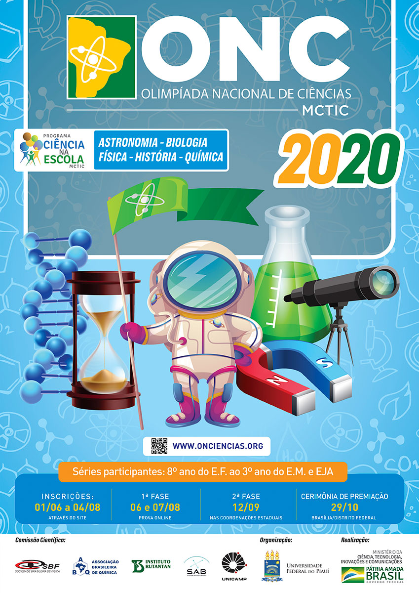 A Olimpíada Nacional de Ciências integra o Programa Ciência na Escola, do Ministério da Ciência, Tecnologia e Inovações, e é realizada em duas fases, cujas questões englobam as áreas de Astronomia, Biologia, Física, História e Química. Em 2020, a competição aconteceu totalmente on-line.
