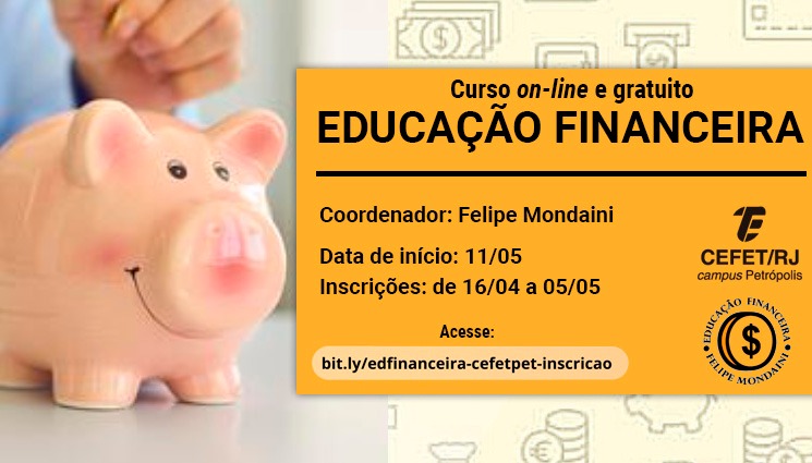 A partir do dia 11 de maio, o projeto de extensão “Educação Financeira”, do Cefet/RJ campus Petrópolis, oferece um curso remoto e gratuito. No total, serão nove encontros que visam apresentar a educação como um instrumento para se obter equilíbrio na administração da vida financeira. As aulas, que serão ministradas pelo professor do Cefet/RJ Felipe Mondaini, acontecerão às terças-feiras, das 18h30 às 20h.