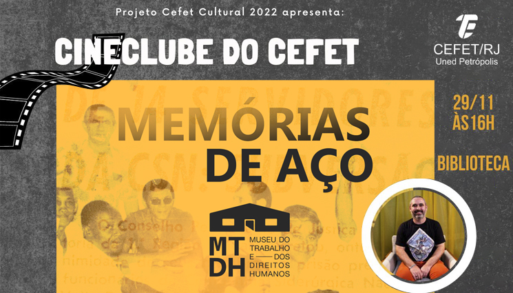 O projeto de extensão Cefet Cultural 2022, do Cefet/RJ Uned Petrópolis, realiza a sessão de estreia do seu cineclube no dia 29 de novembro (terça-feira), às 16h, na Biblioteca da unidade. No evento, será exibido o curta-metragem “Memórias de Aço”, seguido de uma roda de conversa com Fernando Sousa, um dos diretores do filme. A atividade é aberta aos públicos interno e externo.
