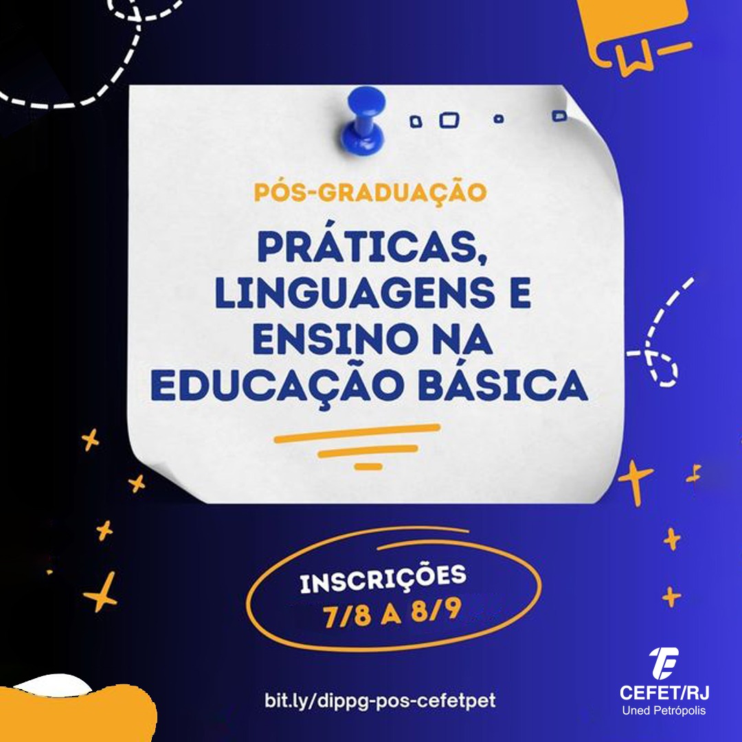 Iniciaram, na segunda-feira (7), as inscrições para o processo seletivo da pós-graduação lato sensu em Práticas, Linguagens e Ensino na Educação Básica, do Cefet/RJ Uned Petrópolis. A inscrição é gratuita e deve ser feita eletronicamente até 8 de setembro.