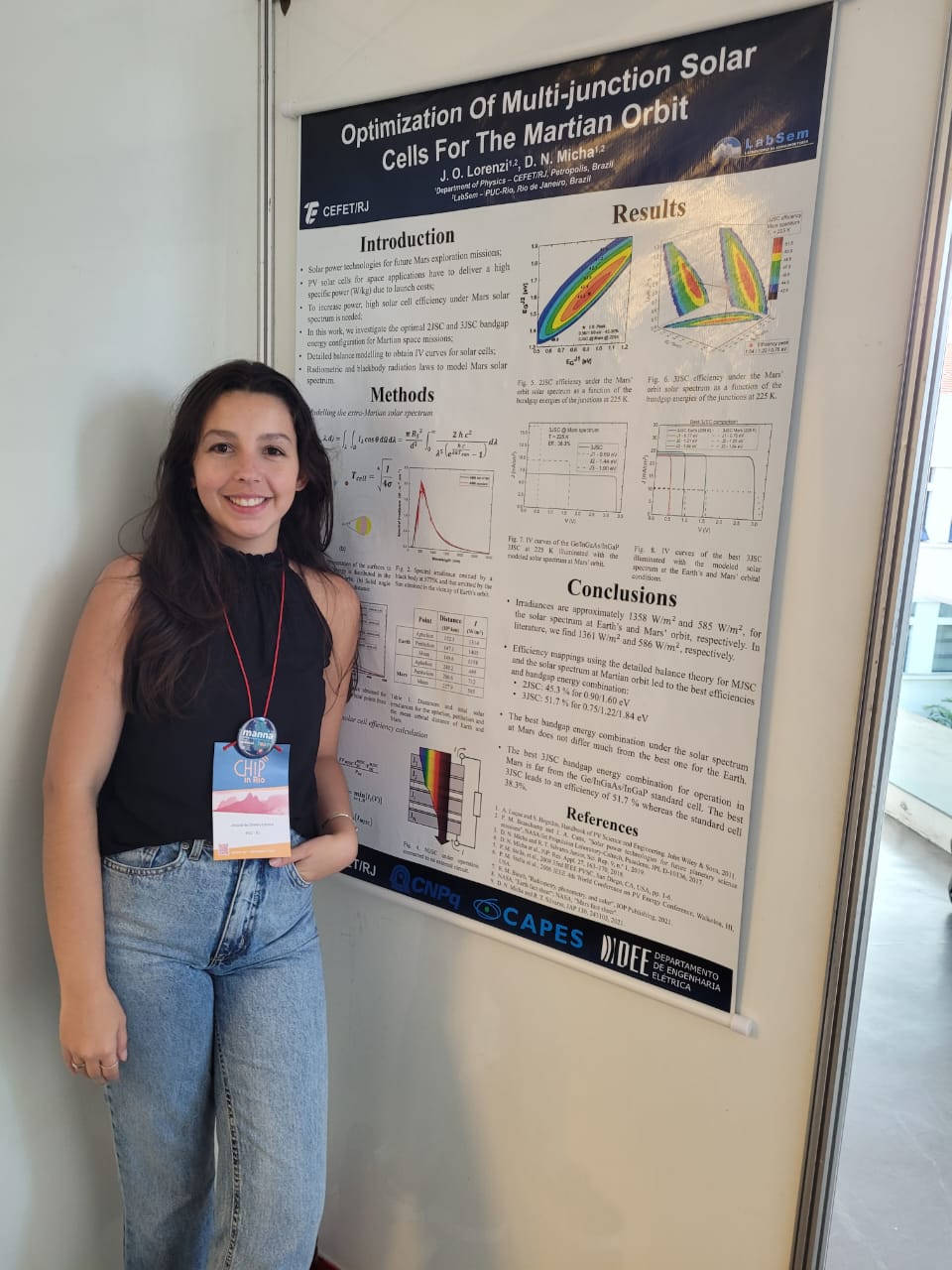 “Neste trabalho, nós buscamos encontrar as melhores combinações de energias de gap para compor células de duas e três junções no ambiente da órbita marciana. Começamos por um estudo teórico para determinar o espectro da irradiância solar na distância estudada. Em sequência, trabalhamos simulações de desempenho de dispositivos de múltiplas junções com base no modelo de balanço detalhado”, explicou Jéssica.