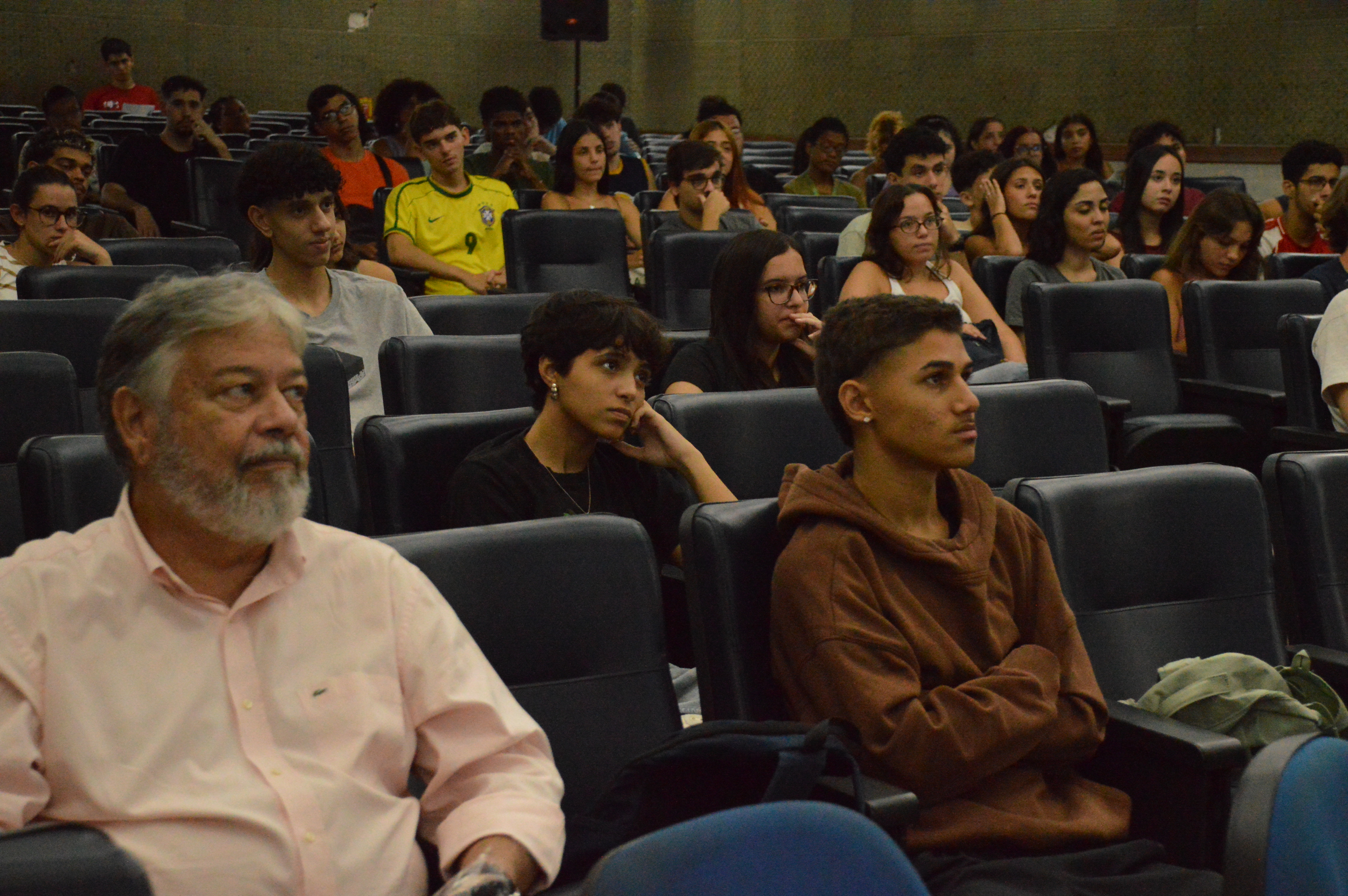 O chefe do Departamento de Educação Superior (DEPES), Bernardo Gomes, acompanhou junto aos novos alunos as apresentações realizadas no Auditório 1