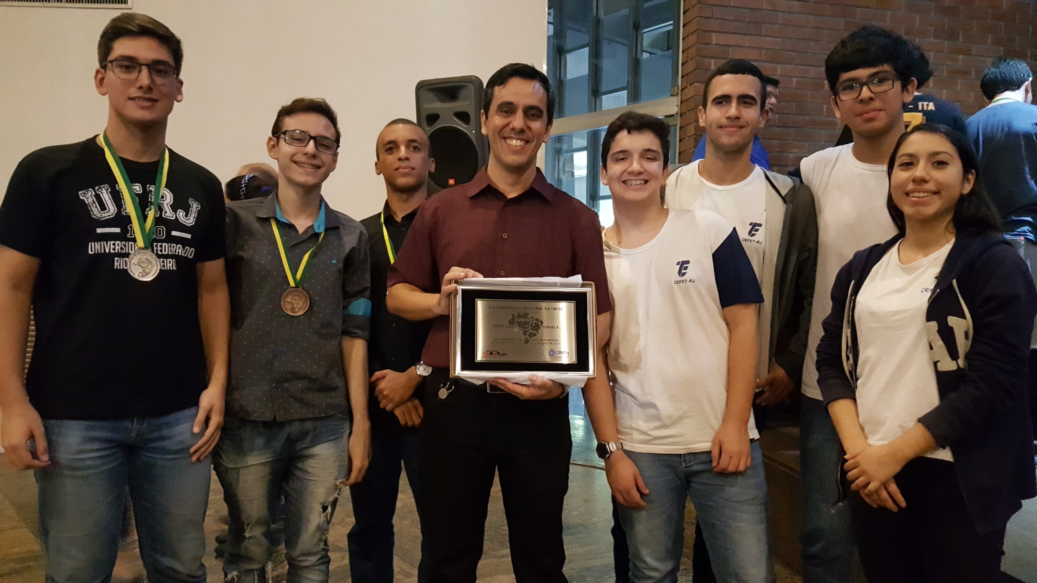 “Foram dez alunos do Cefet/RJ premiados, ou seja, ficamos com 15% dos prêmios”, conta o professor Wagner de Souza. Pela segunda vez, o Cefet/RJ foi agraciado com a placa de Melhor Escola Federal no ensino de Física. O primeiro prêmio foi ganho em 2013 e as placas estão expostas na Coordenação de Física do campus Maracanã. Ao enfatizar que a competição é um evento nacional que reúne diversas instituições de ensino, inclusive escolas federais como o Colégio Militar, o Colégio Naval e o Colégio Pedro II, o professor ressalta o alto nível da competição.