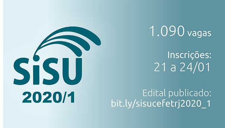 As inscrições no Sisu poderão ser realizadas entre os dias 21 e 24 de janeiro, exclusivamente pela internet, pelo endereço http://sisu.mec.gov.br. No Cefet/RJ, os candidatos podem optar por diversos cursos na área de Engenharia, além de Turismo, Ciência da Computação, Administração, Línguas Estrangeiras Aplicadas às Negociações Internacionais, Sistemas de Informação, Física e tecnólogo em Gestão de Turismo. É preciso observar a pontuação mínima exigida para cada curso no Exame Nacional do Ensino Médio (Enem) realizado em 2019. Os resultados individuais do Enem serão divulgados em 17 de janeiro.