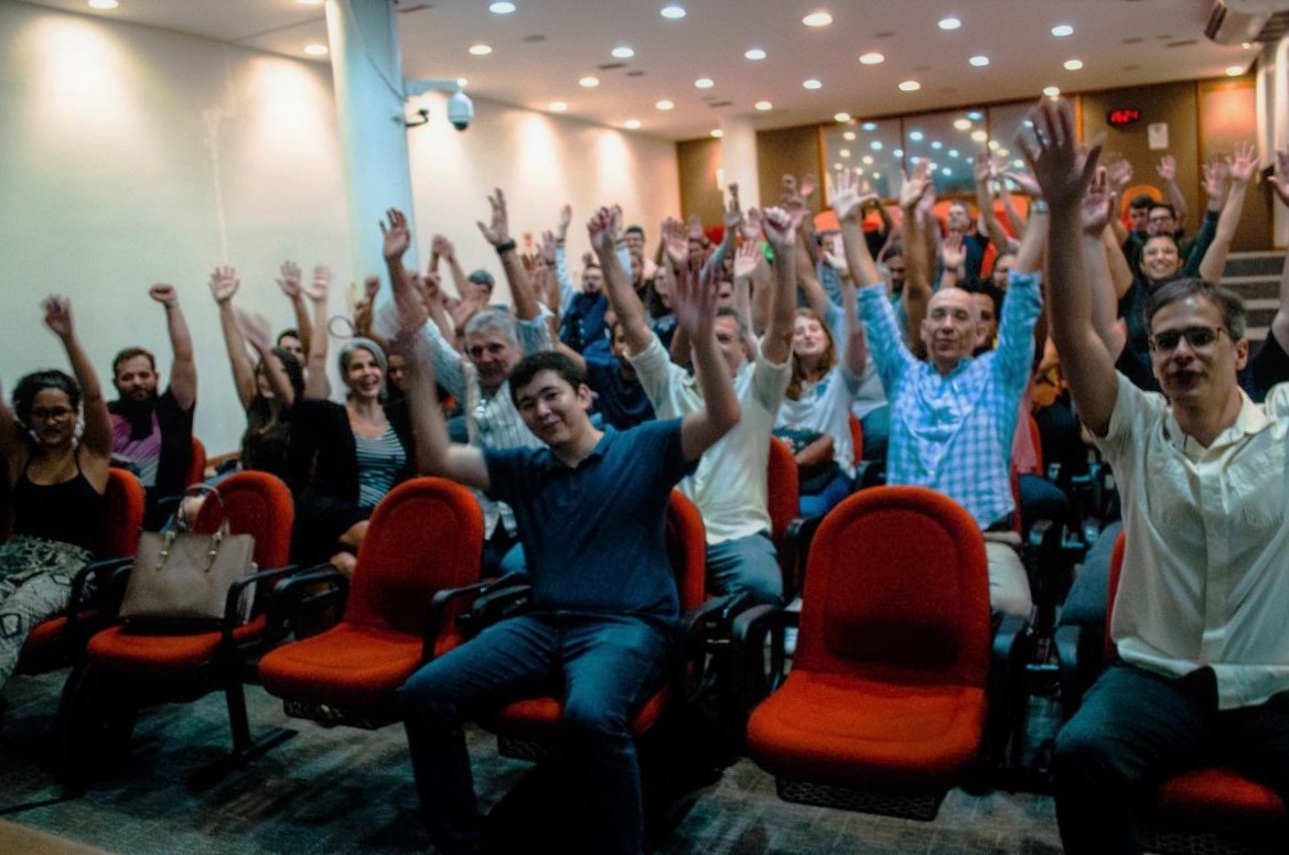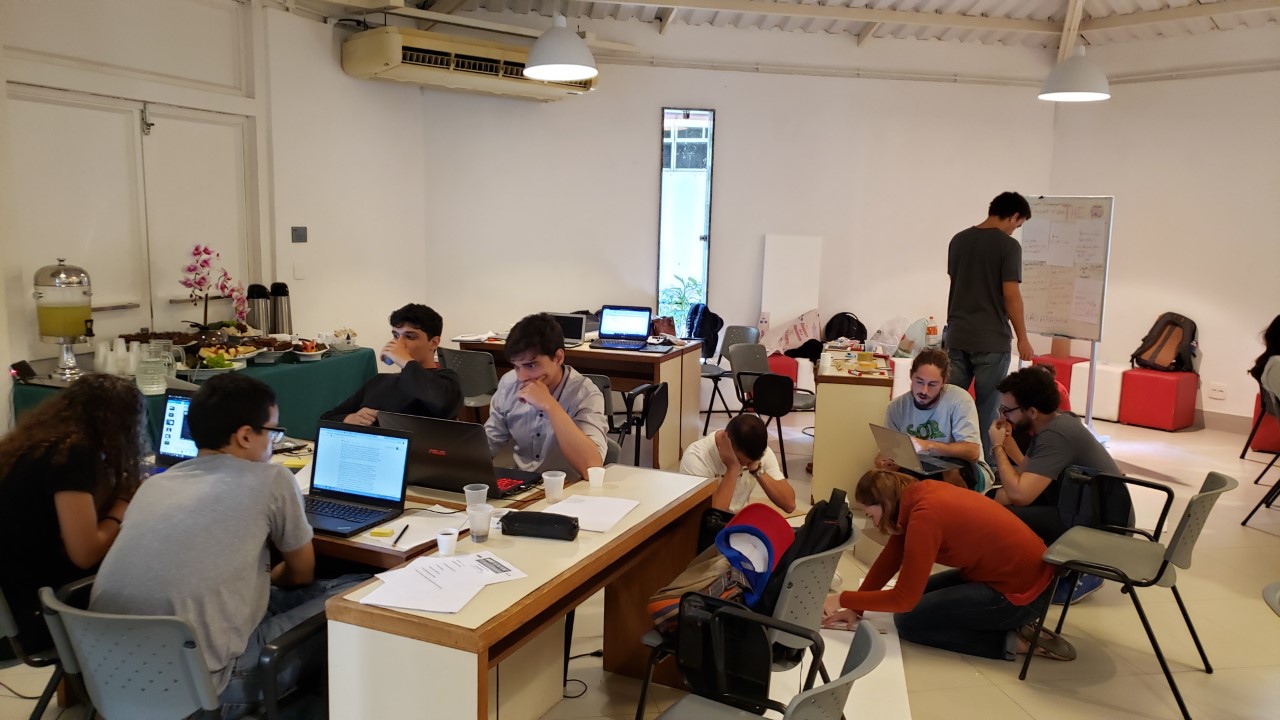 Membros da equipe Corais durante a apresentação final. Foto: UFRJ