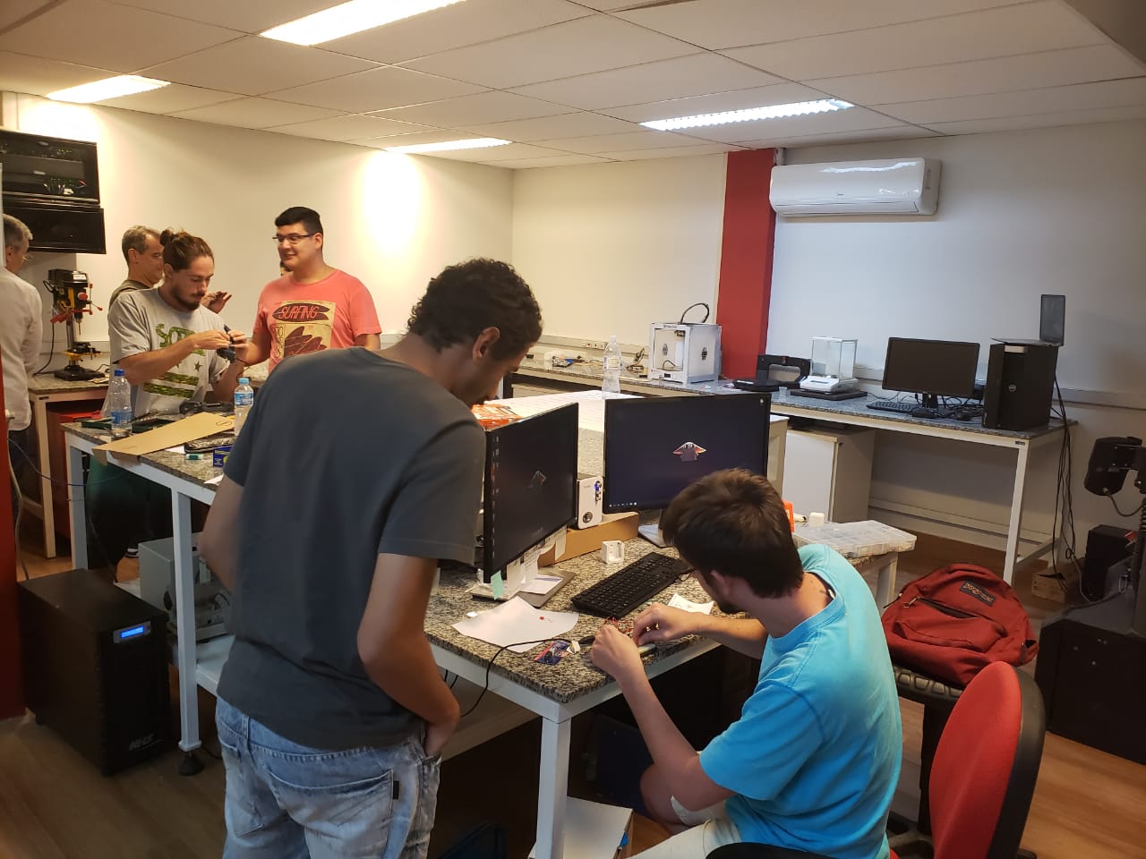 Equipes trabalhando durante a montagem dos protótipos. Fotos: UFRJ