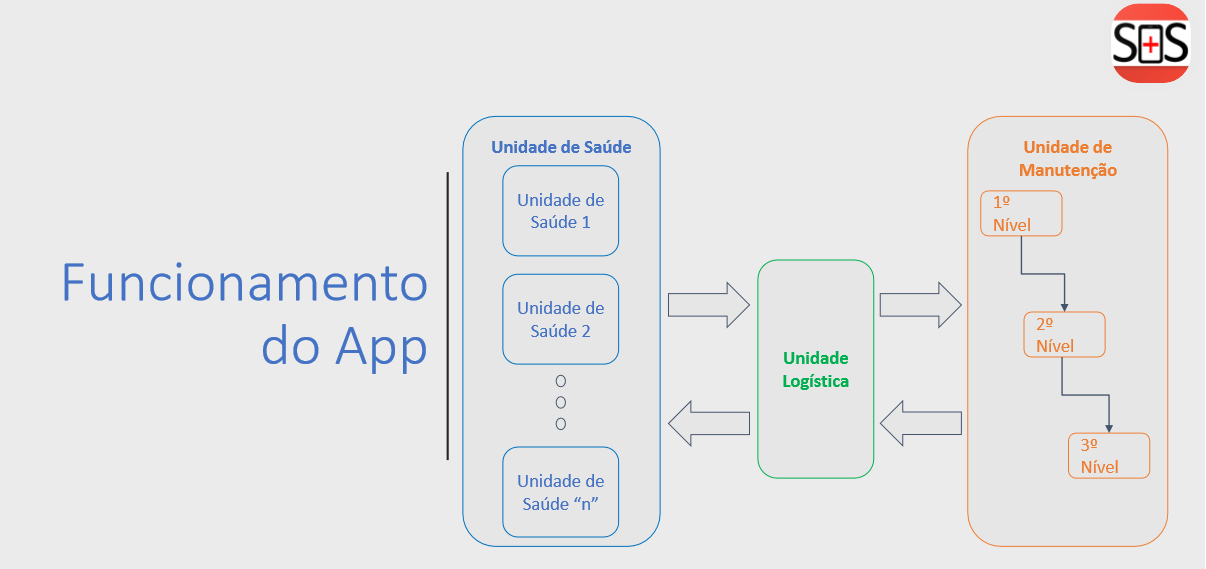 A proposta principal do SOSTecSaúde é conectar hospitais e clínicas às unidades de manutenção, contando ainda com a possibilidade de estabelecer parcerias futuras para obter apoio logístico e viabilizar o transporte desses equipamentos. Dessa forma, o aplicativo funcionará como uma ponte, na qual, de um lado, as unidades de saúde inserem informações sobre os equipamentos com defeito e, do outro, os agentes de manutenção verificam a disponibilidade e a capacidade para atendimento.